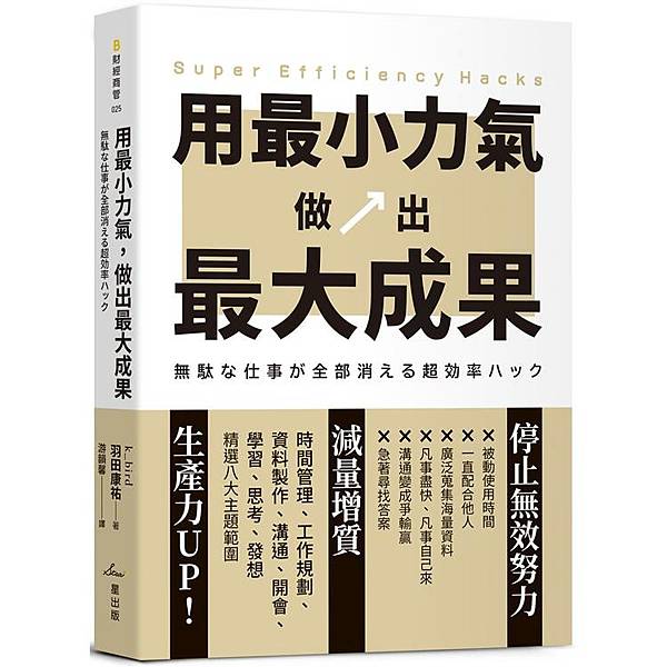 精選「時間管理」、「工作執行力」、「溝通效率」、「資料製作」、「開會效率」、「學習效率」、「思考力」八大主題範圍,從源頭破除無效努力,廣泛提升各領域的工作生產力。